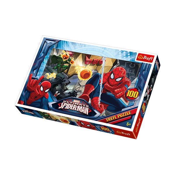 Puzzle 100 elementów ze Spider-Manem i jego przeciwnikami. Po ułożeniu powstanie obrazek o wymiarach 41x27,8cm. Wysoką jakość, nasycenie kolorów i bezpieczeństwo układania zapewnia kalandrowany papier odbijający światło i wykorzystanie materiałów ekologicznych. Puzzle oparte na licencj Marvel.