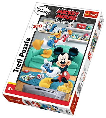 Puzzle 100 elementów z uwielbianymi przez dzieci Donaldem i Mikim. Po ułożeniu powstanie obrazek o wymiarach 27,8x41 cm. Wysoką jakość, nasycenie kolorów i bezpieczeństwo układania zapewnia kalandrowany papier odbijający światło i wykorzystanie materiałów ekologicznych.