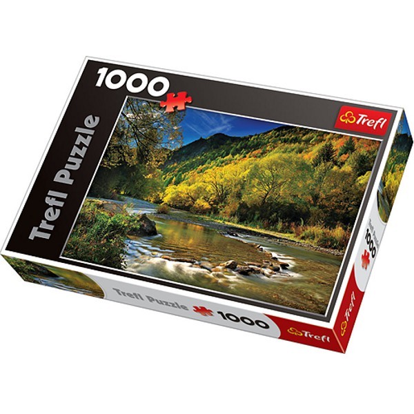 Puzzle 1000 elementów z widokiem na Arrow River w Nowej Zelandii. Po ułożeniu powstanie obrazek o wymiarach 68x48 cm. Wysoką jakość, nasycenie kolorów i bezpieczeństwo układania zapewnia kalandrowany papier odbijający światło, pokryty ekologicznymi farbami spożywczymi.