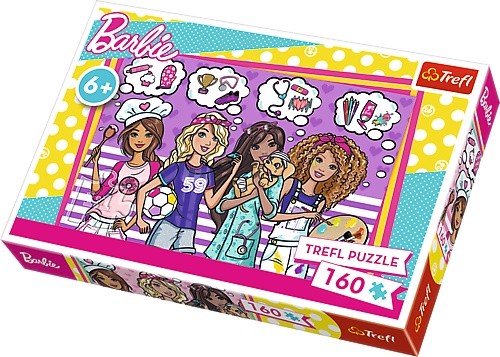 Puzzle 160 elementów z Barbie i jej przyjaciółkami. Po ułożeniu powstanie obrazek o wymiarach 41x27.8 cm. Wysoką jakość, nasycenie kolorów i bezpieczeństwo układania zapewnia kalandrowany papier odbijający światło, pokryty ekologicznymi farbami spożywczymi.