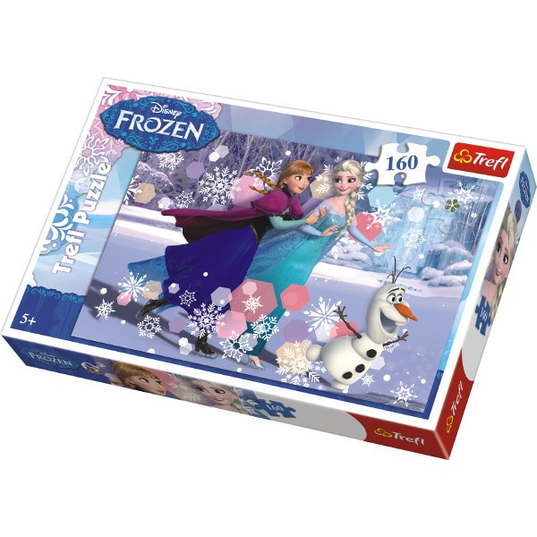 Puzzle 160 elementów z bohaterami filmu animowanego Disneya "Frozen". Po ułożeniu powstanie obrazek o wymiarach 41 x 27,8 cm. Wysoką jakość, nasycenie kolorów i bezpieczeństwo układania zapewnia kalandrowany papier odbijający światło i wykorzystanie materiałów ekologicznych.
