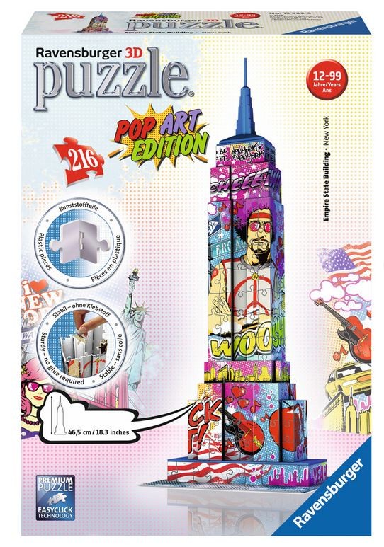 Strona główna Gry/Puzzle puzzle 216 ELEMENTÓW 3D Empire State Building Pop Art Cena Netto: 27,79 zł. error_outline Produkt chwilowo niedostępny. Opis Puzzle Ravensburger 216 ELEMENTÓW 3D Empire State Building Pop Art.