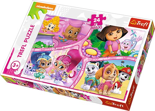 Układankę tworzą 24 bardzo duże puzzlowe elementy, dzięki czemu dzieci poradzą sobie z samodzielnym ułożeniem obrazka. Zabawa rozwija zdolności manualne, spostrzegawczość i daje radość samodzielnego tworzenia. Piękna grafika z bohaterami kreskówek znanych z Nickelodeon sprawi radość każdemu dziecku.