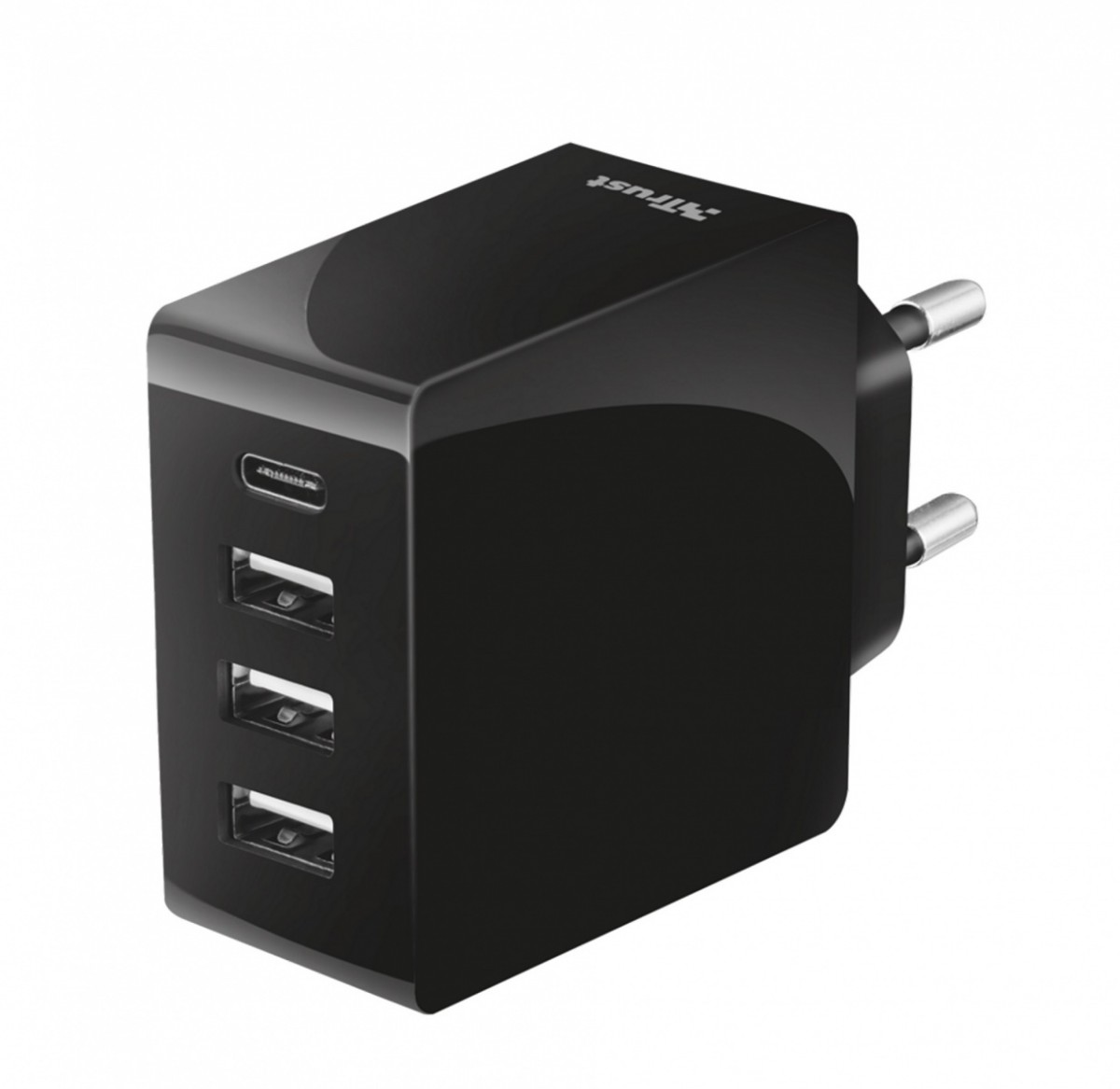- Mała ładowarka sieciowa z 1 portem USB-C i 3 portami USB-A