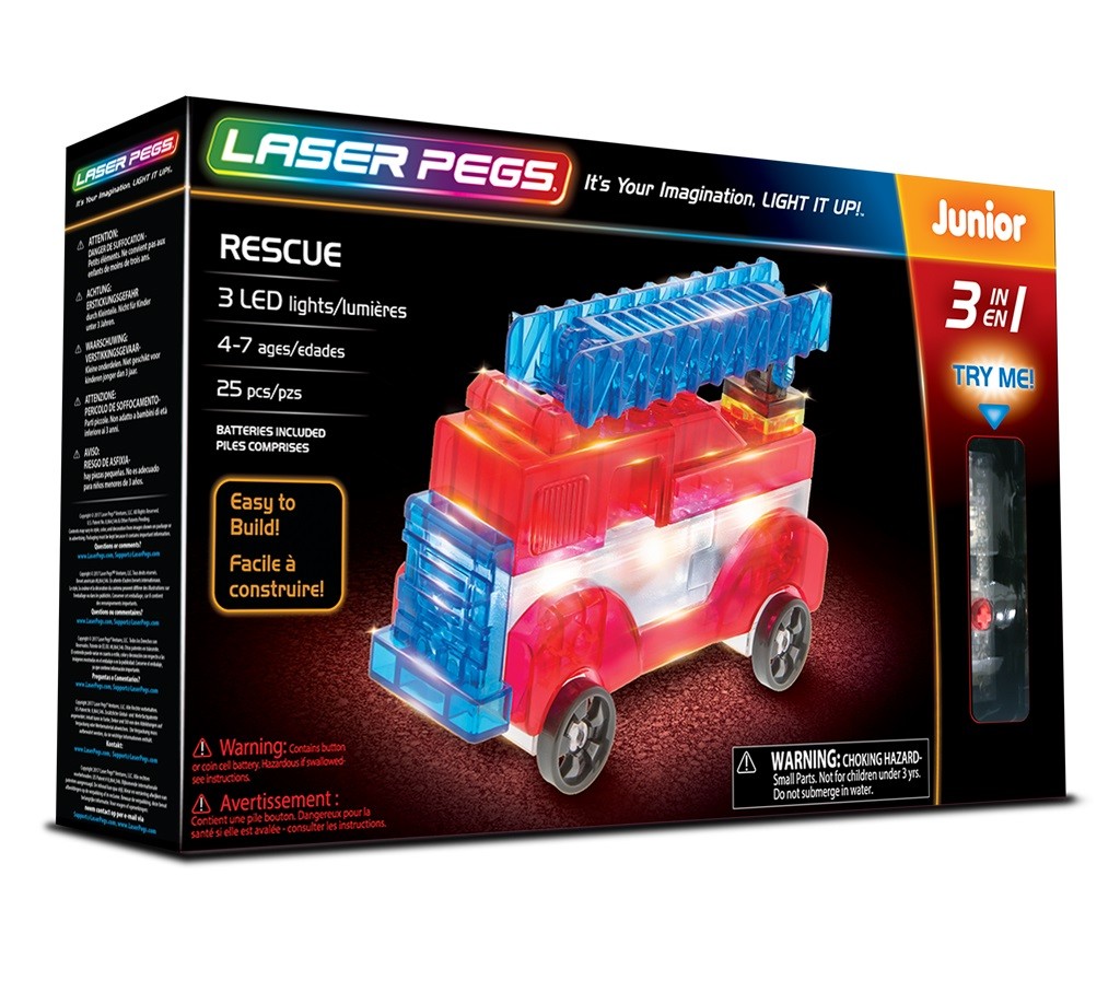 RESCUE 3D BOX to możliwość kreatywnej zabawy w ratownika medycznego, policjanta i strażaka. W zestawie znajduje się 25 konstrukcyjnych klocków oraz 3 elementy z diodami LED, które pozwalają na zbudowanie trzech pojazdów ratunkowych: ambulansu, straży pożarnej, czy radiowozu. Przejmij straże nocne i czuwaj nad zagrożonym miastem!