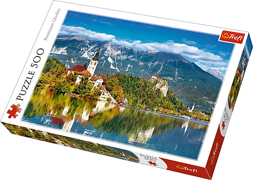 Puzzle 500 elementów ze zdjęciem alpejskiej miejscowości Bled w Słowenii.
