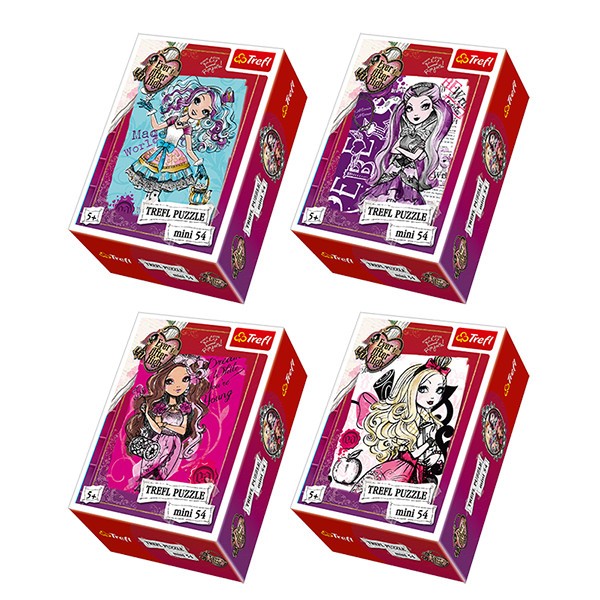 Zestaw 4 układanek dla fanów Ever After High w małych, wygodnych pudełeczkach, które swobodnie zmieszczą się w dziecięcym plecaczku i na półce z zabawkami. Każda układanka to inny obrazek, złożony z 54 elementów. Zestaw jest doskonałym pomysłem na upominek dla rodzeństwa każdy otrzyma swoją własną, kolorową układankę. Urozmaiceniem zabawy będzie układanie puzzli na czas, porównanie obrazków, szukanie podobieństw i różnic. Po ułożeniu dzieci otrzymają piękne obrazki przedstawiające bohaterów ze świata Ever After High.