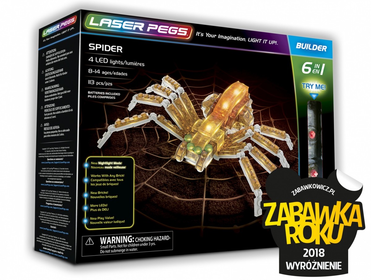 SPIDER 6w1 pozwala małemu odkrywcy na wszechstronną zabawę: poznanie organizmów żywych, a także na kreatywność budowania ze świecących klocków.