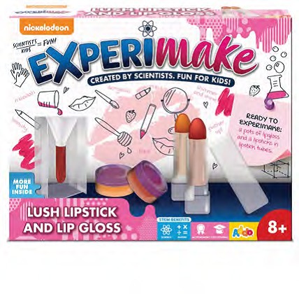 Zawartość: 2 probówki do szminki, wosk pszczeli (10g), pipeta, plastikowa łopatka, wosk Carnauba (10g), olej rycynowy (50ml), mała miseczka pomiarowa, pomarańczowy barwnik kosmetyczny (3g), forma szminki, rękawiczki ochronne, czerwony barwnik kosmetyczny (3g), zapach truskawkowy (3 ml)
