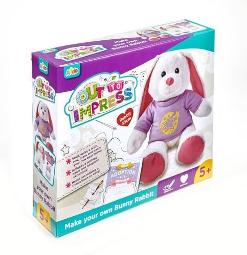 Stwórz swoją własną przytulankę – królika - z tym zestawem. Wypełnij go puchem, ubierz, zszyj i nadaj mu imię! Uzupełnij certyfikat adopcji, żeby nie zapomnieć o jego urodzinach.