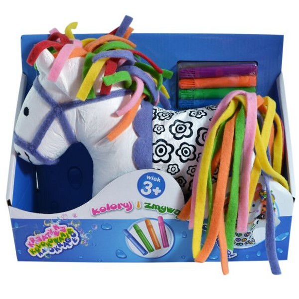 Ale to nie koniec atrakcji. Kucyka można pomalować za pomocą dołączonych do zestawu zmywalnych flamastrów, o intensywnych kolorach! Kolorować kwiatki, tworzyć własne rysunki. Gdy jakiś wzór nam się znudzi, możemy go zmyć i zacząć zabawę od początku!