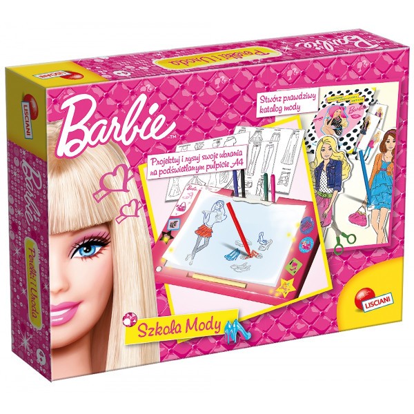 To twórcze laboratorium, które pozwoli Ci wejść do świata mody Barbie! Na podświetlanej tablicy formatu A4 dziewczynki mogą rysować i ubrać Barbie jak chcą. Wystarczy odrysować wzór i wyciąć, a następnie i dobrać do siebie poszczególne elementy garderoby, nakleić na białą kartkę i pokolorować, nakleić ozdobny papier i przykleić kryształki. W ten sposób dziecko będzie mogło stworzyć swój katalog z kreacjami i stać się oficjalnym projektantem swojej ulubionej lalki!