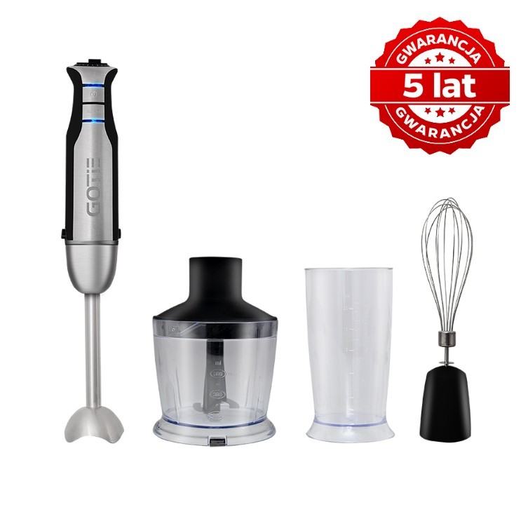 GOTIE GHB-1000 to elegancki blender o rewolucyjnie wysokiej mocy 1000 W, który idealnie sprawdzi się do przygotowania napojów i potraw. Ergonomiczny kształt ułatwia korzystanie z urządzenia, a ostrze ze stali szlachetnej gwarantuje pełną niezawodność. Płynna regulacja obrotów umożliwia dostosowanie mocy urządzenia do właściwości blendowanych potraw, a w razie potrzeby przycisk TURBO pozwoli na uzyskanie maksymalnej mocy. Funkcjonalność urządzenia zwiększają dwie nasadki: miksująca i ubijająca oraz miski do ubijania i do mieszania.