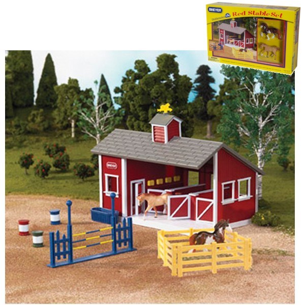 BREYER Zestaw czerwona stajnia i 2 konie