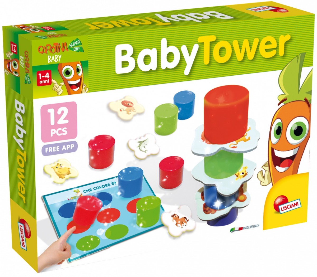 Zestaw rozwijający zdolności manualne oraz koncentrację dzieci od pierwszego roku życia. Opakowanie zawiera klocki i kształty, z których układana jest wieża. Stopniowo zwiększamy jej wysokość, zachowując przy tym ostrożność, aby nie runęła.