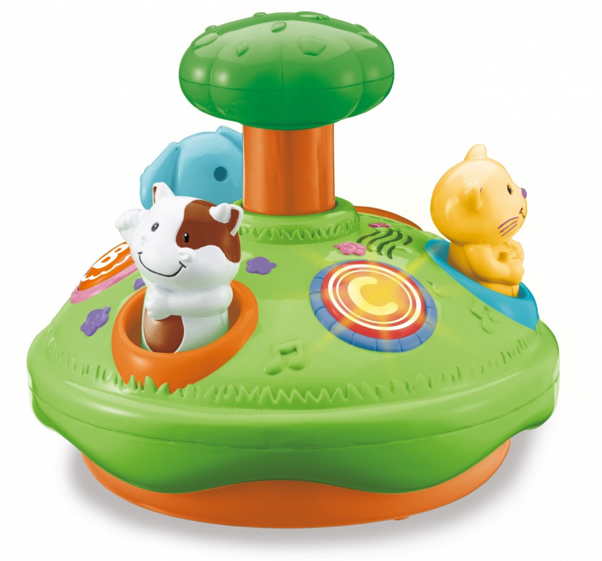 - Jest zabawką obrotową - po wciśnięciu drzewka bączek zaczyna się kręcić.