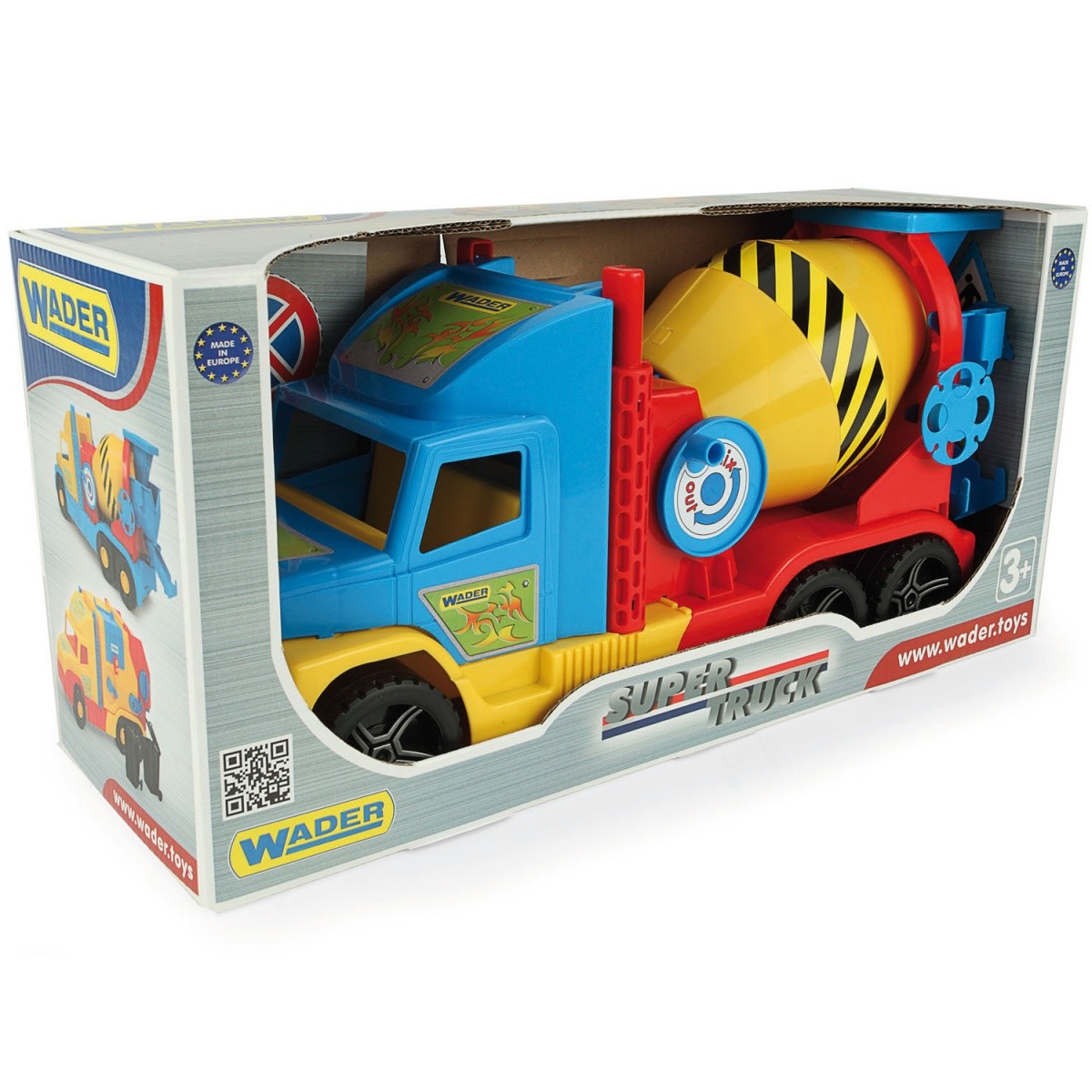 Super Truck Krótka Betoniarka to duża, wytrzymała, a przede wszystkim bezpieczna zabawka dla dziecka, nadająca się do zabawy zarówno w domu, jak i na dworze. Solidny projekt odzwierciedla rzeczywisty wygląd pojazdu i pozwala przenieść się dziecku w świat budownictwa. Betoniarka posiada wiele ruchomych elementów urozmaicających zabawę w piaskownicy. Dziecko może napełnić gruszkę wodą i piaskiem, a dzięki zamontowanej korbie obracać nią i mieszać jej zawartość. Dodatkowo w opakowaniu znajdują się kolorowe wycinanki. Całość wykonana jest z wysokiej jakości, trwałego tworzywa sztucznego, odpornego na warunki atmosferyczne, dzięki czemu zabawkę przez cały rok można przechowywać np. na balkonie czy podwórku. Ruchome elementy betoniarki pomagają rozwijać precyzję i umiejętności manualne dziecka oraz odkryć działanie betoniarki, co wzmacnia zdolności obserwacyjne i logiczne myślenie najmłodszych.