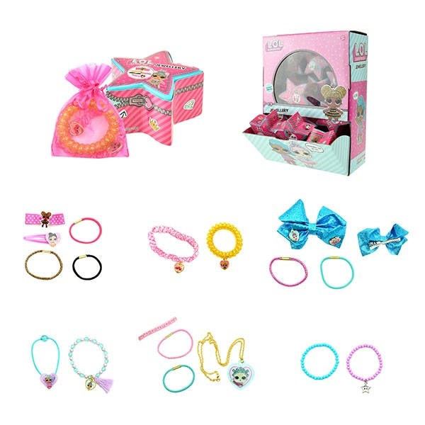 Prawdziwa gratka dla każdej fanki laleczek L.O.L. W różowym pudełku w kształcie gwiazdki kryje się zestaw biżuterii ozdobionej motywem laleczek. Zapakowany dodatkowo w elegancki woreczek. Co znajdziesz w środku? To niespodzianka. Może zestaw gumek do włosów? Może biżuteria? Zbierz je wszystkie! Kolekcjonuj i wymieniaj się z koleżankami.