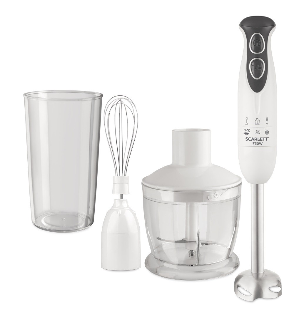 Blender ręczny Scarlett o mocy 750 W to multifunkcyjne urządzenie niezastąpione w każdej kuchni. Wykonane z wysokiej jakości materiałów, z zastosowaniem najnowszych rozwiązań technologicznych sprawi, że przygotowywanie posiłków stanie się niezwykle proste. Funkcje mielenia, ubijania, mieszania, tarcia i rozdrabniania gwarantują wygodę podczas przygotowywania różnego rodzaju produktów.