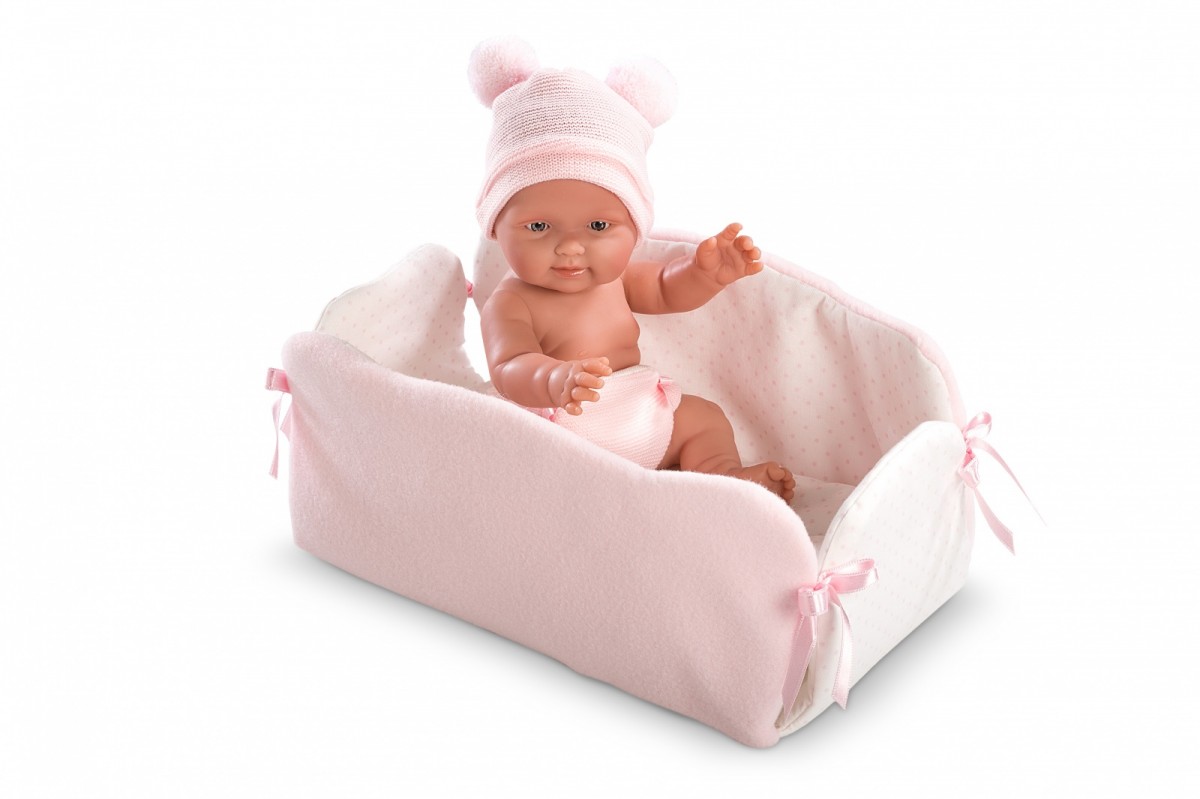 Jej ciało zrobione zostało z przyjemnego w dotyku winylu. Nasz Lalka bobas ubrany jest w różową pieluszkę oraz różową czapeczkę z pomponami. Do lalki dołączona jest mata, która po złożeniu zmienia się w kojec. Lalka zapakowana jest w eleganckie, kartonowe pudełko, idealne na prezent. Manufaktura Llorens od lat dokłada wszelkich starań aby ich wyroby były doskonałe, autentyczne i piękne w każdym detalu. "Kochamy hiszpańskie lalki Llorens"