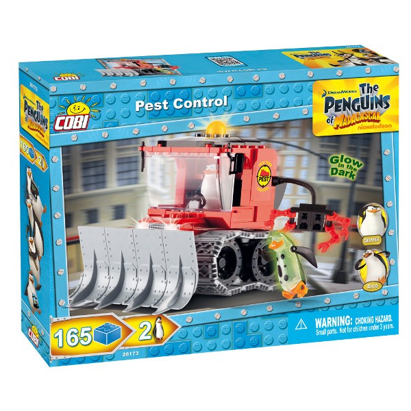 Pojazd ma unoszony lemiesz w pozycji góra-dół oraz ruchome gąsienice. Z tyłu pojazdu umieszczony jest specjalny schowek z chwytakiem. Ramiona chwytaka otwierają się i zamykają tak, aby Pingwiny mogły łatwo złapac cel. Zestaw zawiera 165 elementów w tym 2 figurki: Skippera i świecącego w cimności Rico.