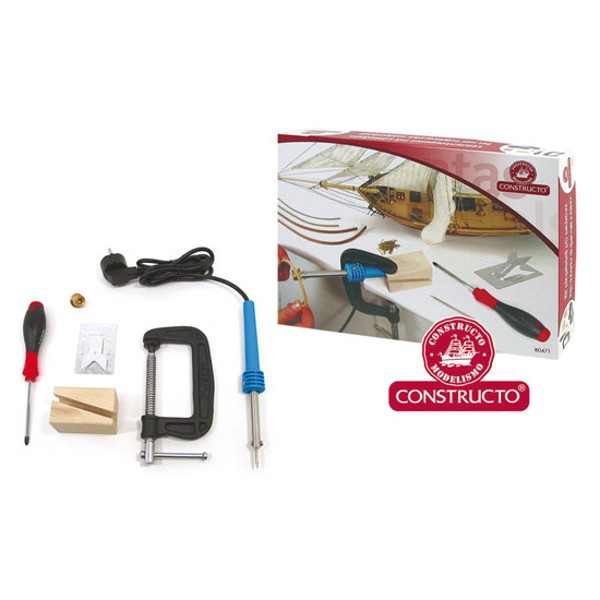 Zestaw narzędzi z lutownicą do formowania drewnianych pasków.