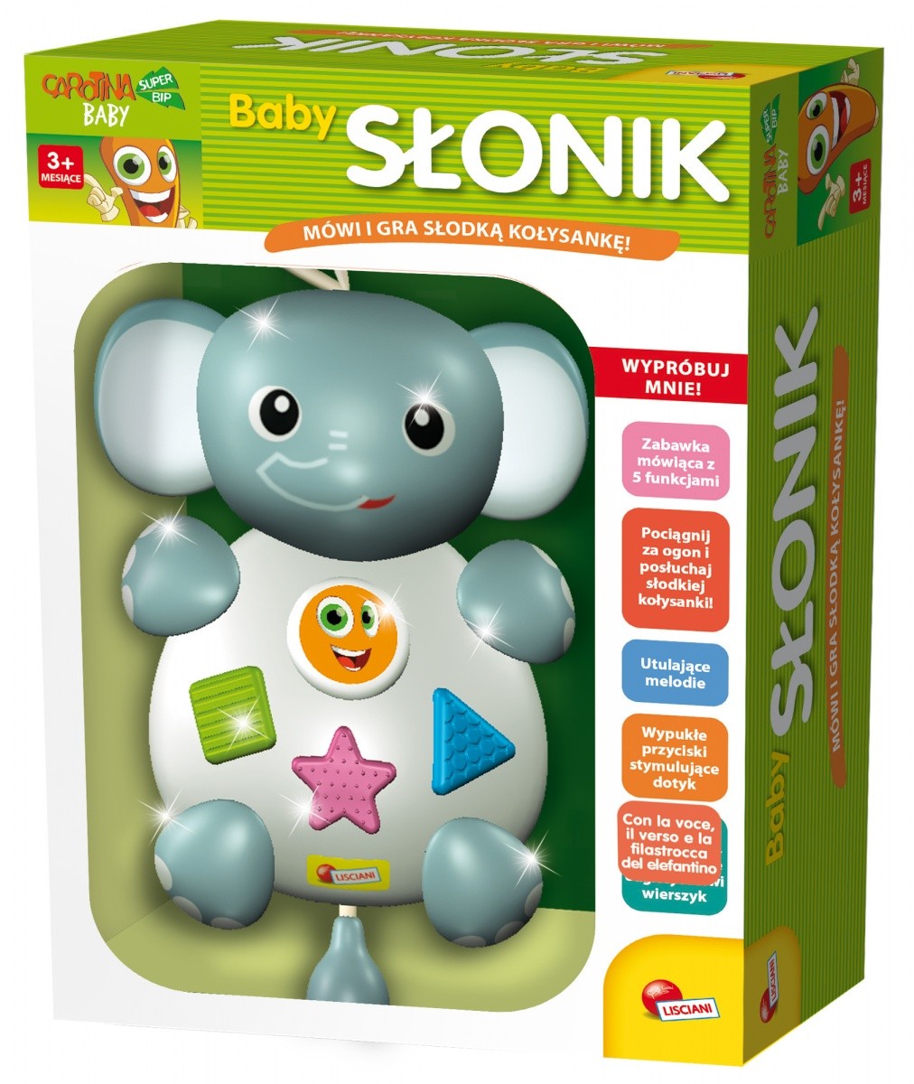 Interaktywna zabawka z 5 funkcjami, która gra wesołe melodyjki i spokojne kołysanki, mówi wierszyki oraz wydaje różne odgłosy.