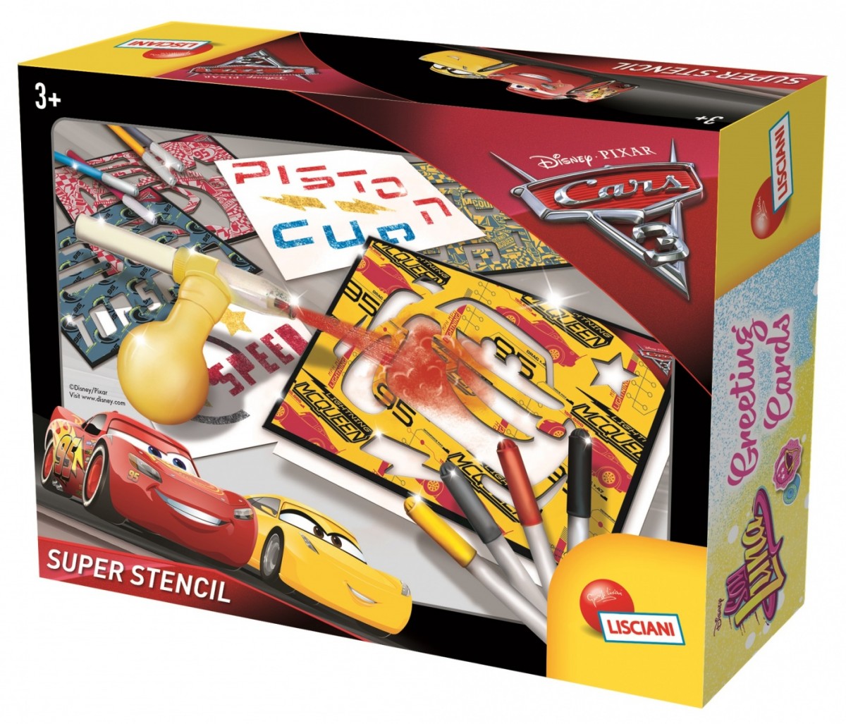 Zestaw Art&Craft do malowania przepięknych obrazów z bohaterami z filmu "CARS 3" za pomocą specjalnych szablonów.