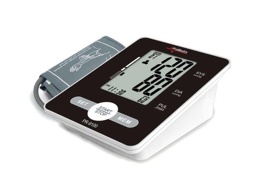 ProMedix PR-9100 to nowoczesny ciśnieniomierz elektroniczny. Posiada funkcje wykrywania nieregularnego tętna podczas pomiaru, która może mieć wpływ na dokładność pomiaru, dzięki czemu pozwala eliminować niewłaściwe pomiary.