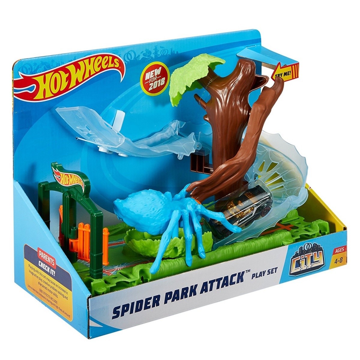 Każdy zestaw łączy się z innymi zestawami Hot Wheels City za pomocą nowego systemu i jest kompatybilny z pomarańczowym torem.
