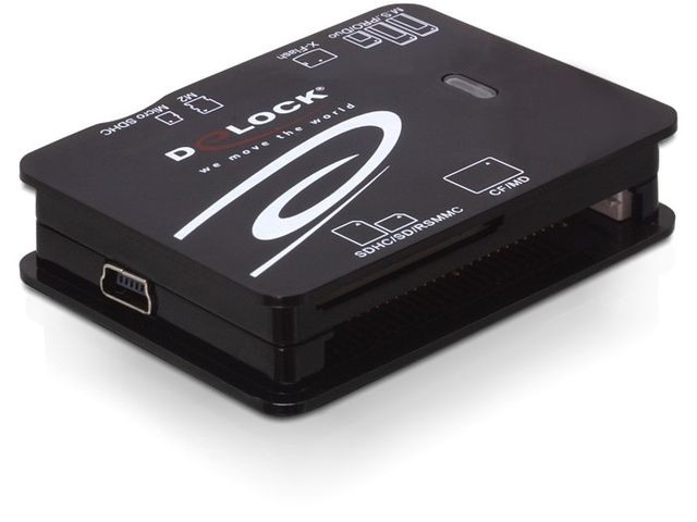 Czytnik kart Delock umożliwia odczyt różnych kart pamięci na Twoim notebooku lub PC przez port USB. Umożliwia odczyt oraz zapis 57 różnych kart pamięci.