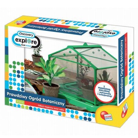 Znajdziesz tu wszystko, czego trzeba, aby uprawiać z sukcesem wiele gatunków roślin. Ciekawy budynek szklarni posiada system nawadniania i można z łatwością zobaczyć pierwsze pojawiające się pąki. Ponadto dzięki doniczkom z naturalnym torfem możesz sadzić swoje sadzonki, bez ryzyka ich uszkodzenia. Zestaw zawiera wiele przydatnych akcesoriów do uprawy roślin. Niezbędny podręcznik, który krok po kroku mówi jak dbać o organizmy roślinne na wszystkich etapach, od ziarna, aż do dojrzałej rośliny. Ponadto 64 karty ze zdjęciami najciekawszych drzew, kwiatów i różnorodnych roślin. Twój pierwszy ogród botaniczny, to niezbędny zestaw dla wszystkich kochających przyrodę. A więc .. Kciuki w trawę!