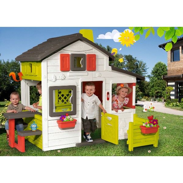 Jest tu masa miejsc do odkrycia: wnętrze domku, ogródek, stolik piknikowy, "tajemnicze drzwi". Domek jest wyposażony w: 2 pary drzwi (jedne są usytuowane w tylnej części domku), 2 okiennice obracające się o 360 stopni umożliwiające zamknięcie okna z przodu lub z boku domku, 1 przenośny zestaw piknikowy składający się ze stolika i 2 ławeczek - do zabawy wewnątrz, lub na zewnątrz domku. W zestawie są 2 skrzynki na kwiaty oraz elektroniczny dzwonek przy wejściu. Aby domek uczynić bardziej zabawnym, fasada została przyozdobiona wizerunkami zwierzątek (piesek, kotek, ptaszki).