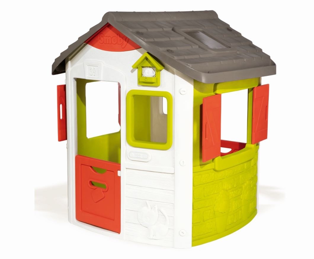 - Wysokość 132 cm, do domku pasuje dodatkowo(można dokupić oddzielnie): dzwonek do drzwi, komin, drzwi do domku, rynna z konewką, ogródek, kuchnia letnia oraz stolik piknikowy.