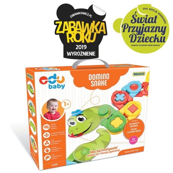 Baw się i rozwijaj z Domino Snake! Dzięki zabawkom EduBaby krok po kroku, rozwijamy nowe umiejętności, pobudzamy aktywność twórczą, poznawczą i ruchową. Maluch z radością sprosta nowym wyzwaniom podczas bezpiecznej i angażującej zabawy, która doskonale wesprze jego rozwój i pozwoli wyćwiczyć nowe umiejętności.