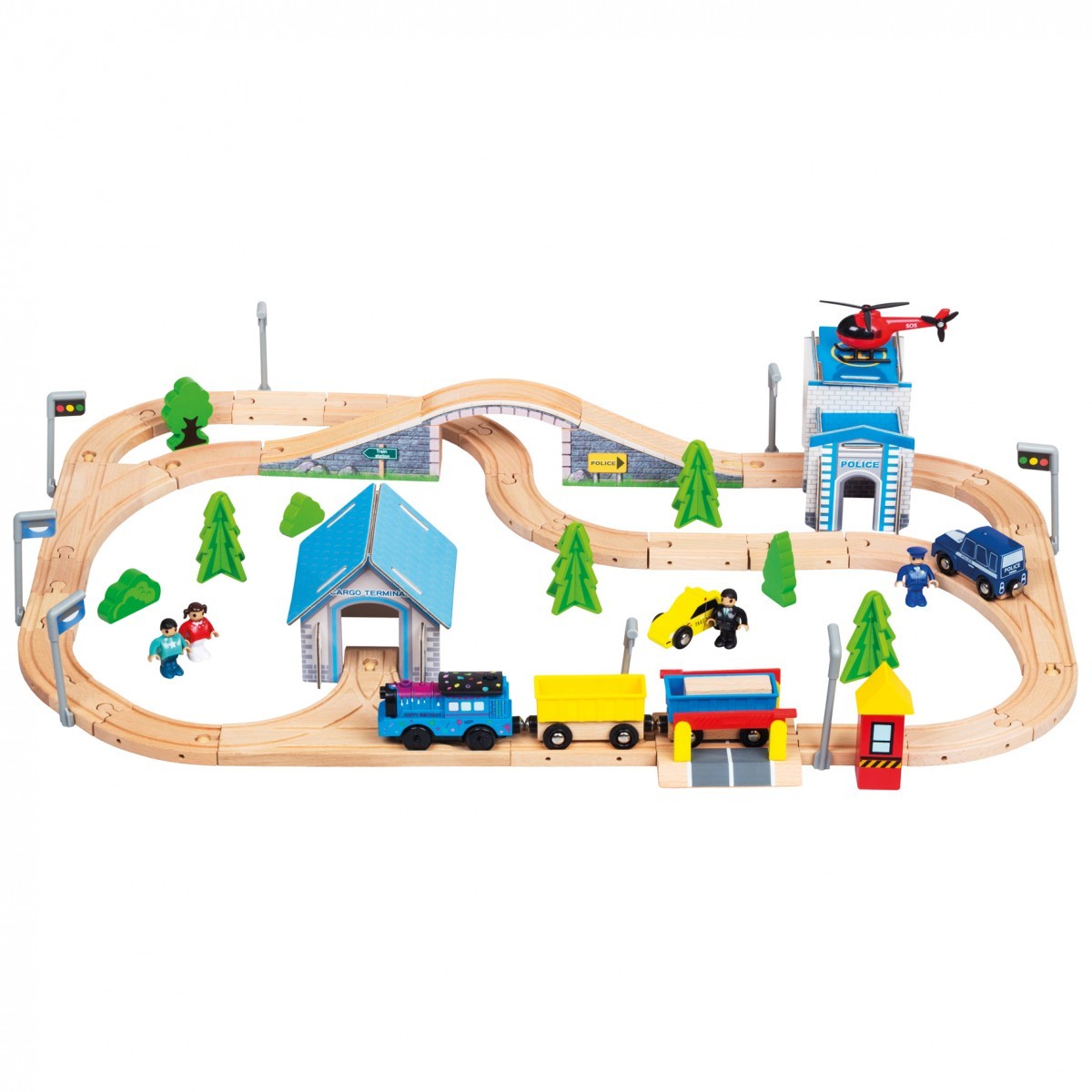 Zbuduj duży pociąg z różnorodnymi akcesoriami, takimi jak przełączniki, zwroty, mosty, bariery i niezbędne akcesoria do otoczenia. Opakowanie zawiera 80 elementów. Lokomotywa działa na akumulator 1x1,5V AA. Bateria nie wchodzi w skład zestawu.