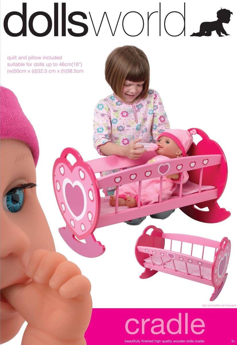 Dolls World Drewniana kołyska dla lalek do 46 cm to idealne uzupełnienie zabawy lalką Dolls World.