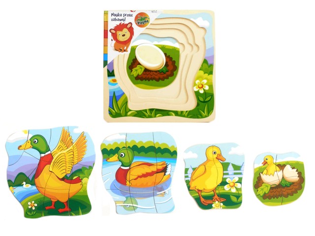 Strona główna Dla najmłodszych układanki Drewniana układanka Kaczka Cena Netto: 15,36 zł. error_outline Produkt chwilowo niedostępny. Opis Układanka składa się z pięciu warstw, na których zostały przedstawione kolejne etapy rozwoju kaczki.Puzzle składają się z czterech wartsw - 4-; 6-; 7- i 10-elementowych.