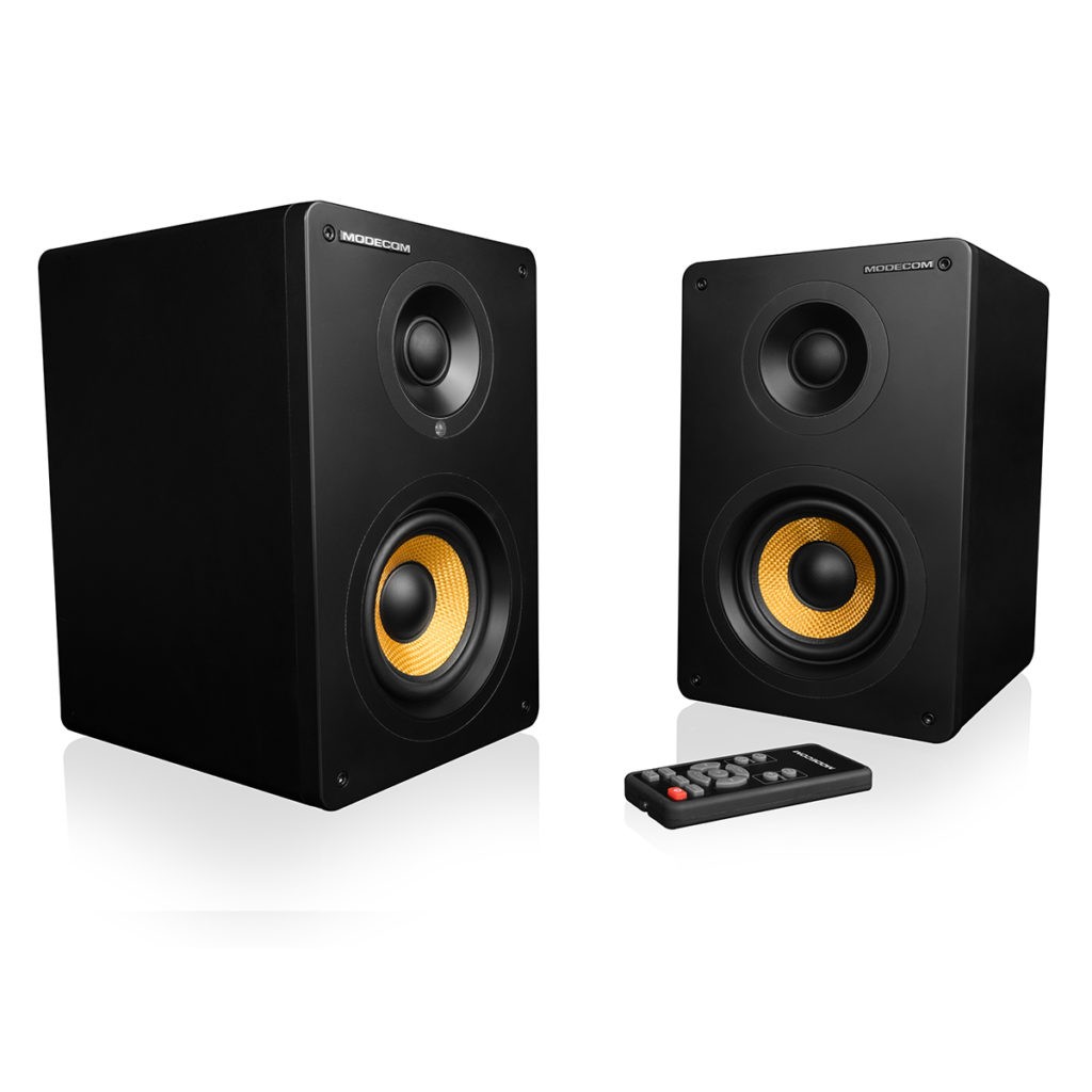 Masywne głośniki o rozmiarach 357 x 240 x 220 mm idealnie wkomponują się zarówno w nowoczesny jak i klasyczny wystrój wnętrza. Głośniki wykonane z czarnej płyty MDF oraz żółtymi dolnymi membranami są wyśmienitym dopełnieniem idealnego dźwięku jaki z MODECOM Eclipse 60 wydobywa się tuż po ich podłączeniu.