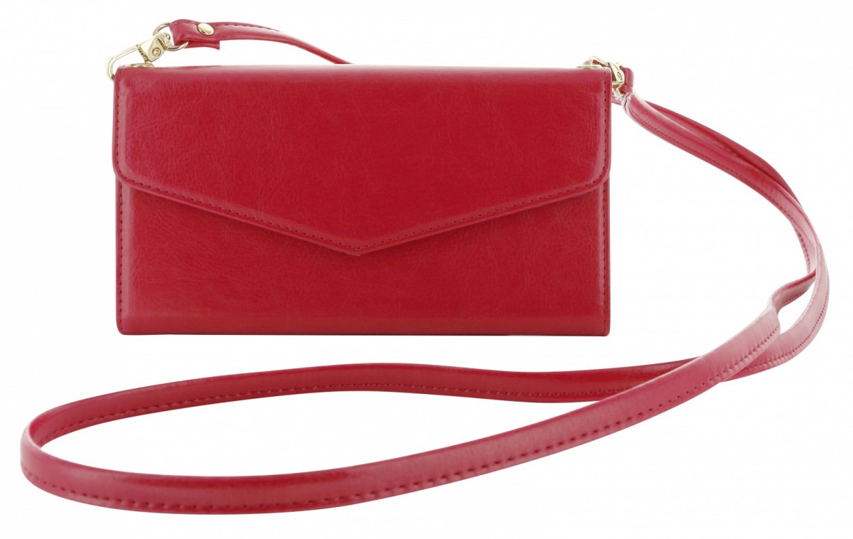 Designerska kopertówka z paskiem na ramię potrafi pomieścić sześć kart kredytowcyh, posiada kieszonkę na banknoty oraz wbudowane etui na iPhone'a 6/6S - dzięki temu nie trzeba wyjmować telefonu z torebki by go użyć.