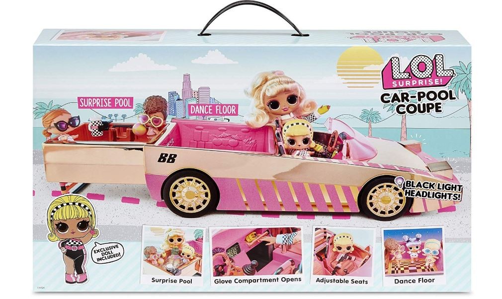 - L. O. L. Suprise! Lalki mogą jeździć stylowo w Car-Pool Coupe, basenem i parkietem tanecznym.