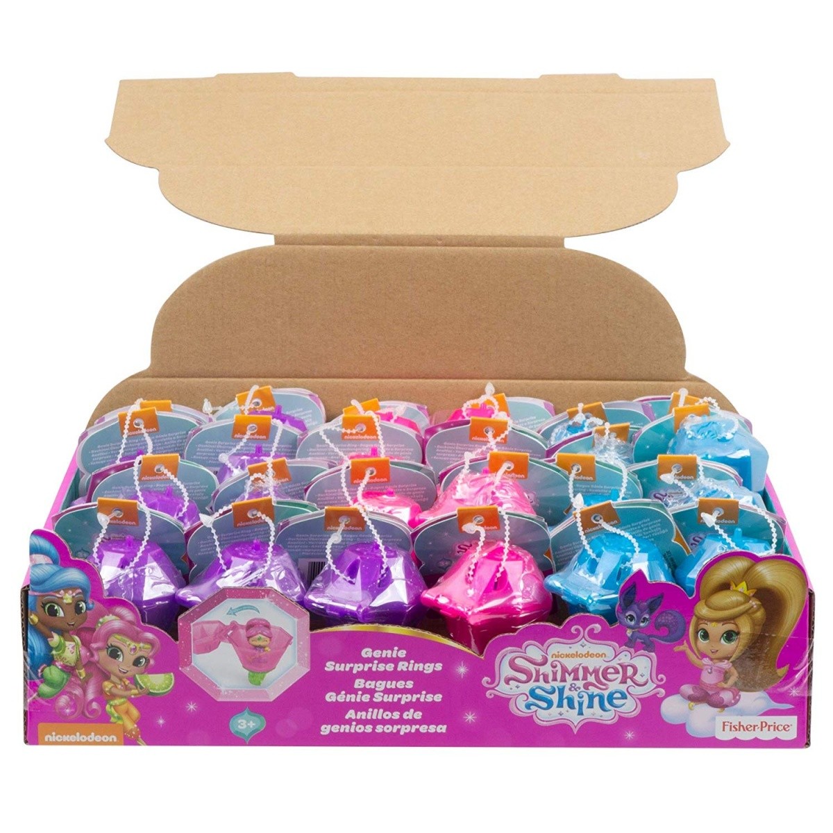 Te urocze pierścionki Shimmer i Shine dla dziewczynek kryją w sobie uroczą niespodziankę. W każdym jest schowany mały dżin! Baw się i odgrywaj historyjki lub przyczep swojego dżina do klejnotu, by móc go podziwiać przez cały dzień. Jest aż 130 różnych dżinów do zebrania! Sprzedawane oddzielnie w zależności od dostępności.