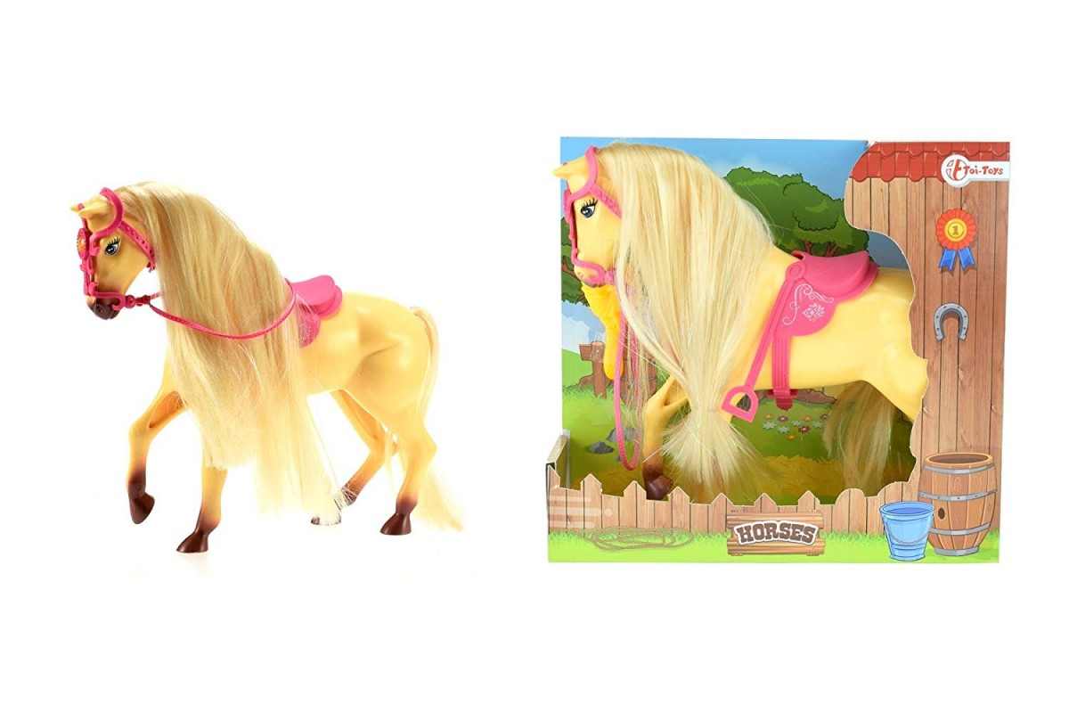 Toi-Toys Duży koń w kolorze beżowym ze szczotką