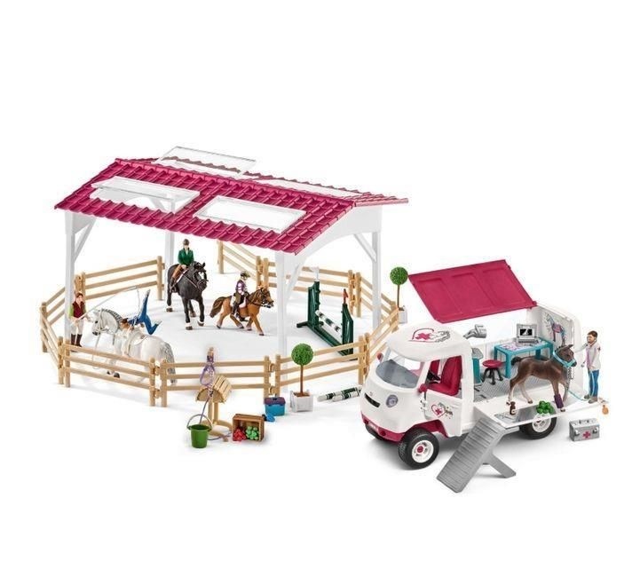 Odnajdziesz tam stajnię, piękny pokaz jeździecki, wybieg, padok, myjnię, ciężarówkę z przyczepą, wóz z zaprzęgiem oraz mnóstwo oprzyrządowania jeździeckiego i akcesoriów do opieki nad końmi, różnorodne figurki jeźdźców, ale przede wszystkim swoje ulubione rasy koni, z których będziesz mógł stworzyć całą hodowlę.