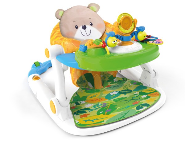 Odłączane Centrum aktywności ma m.in. przesuwane koraliki, wirujące pszczółki, bezpieczne lusterko. Gra melodyjki, miga światełkami.