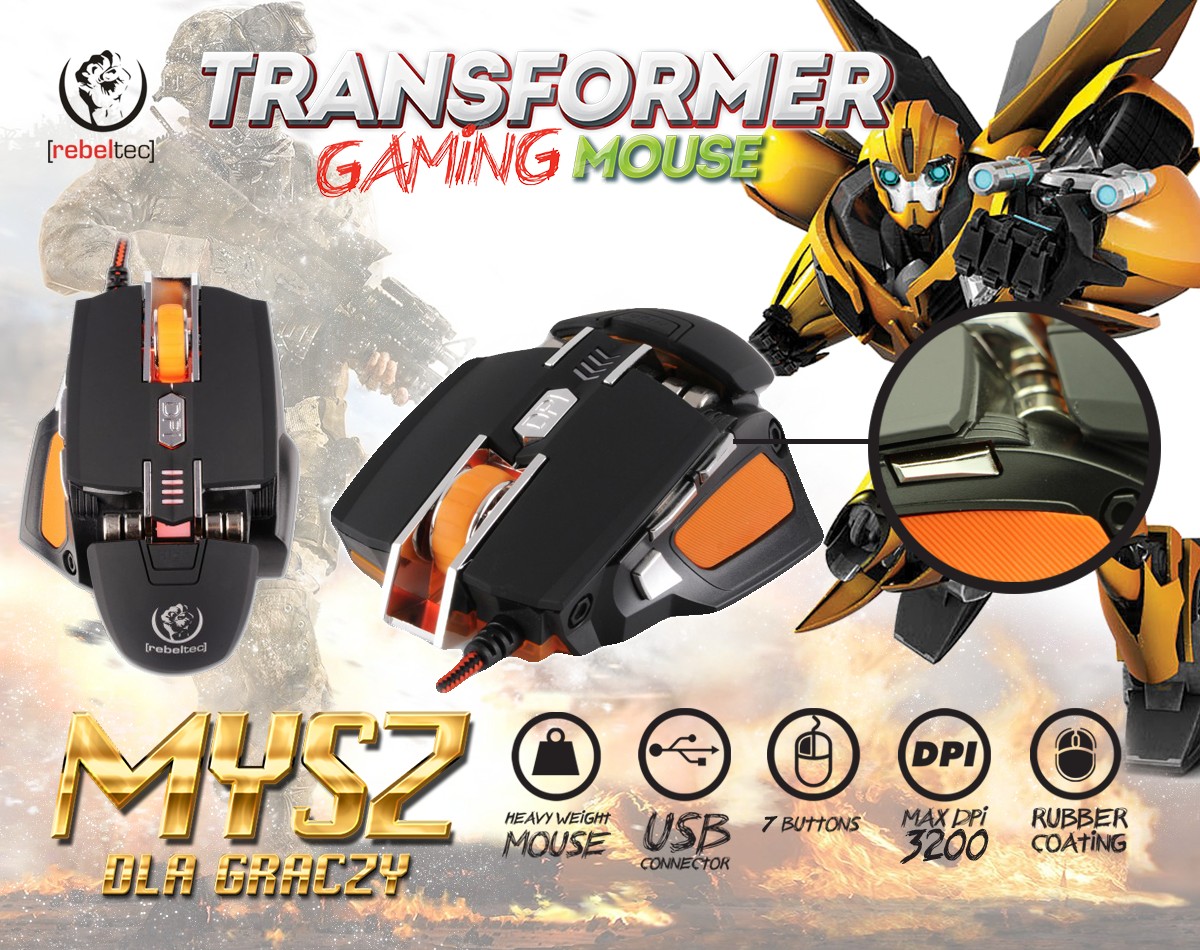 Gamingowa mysz optyczna USB TRANSFOMER
