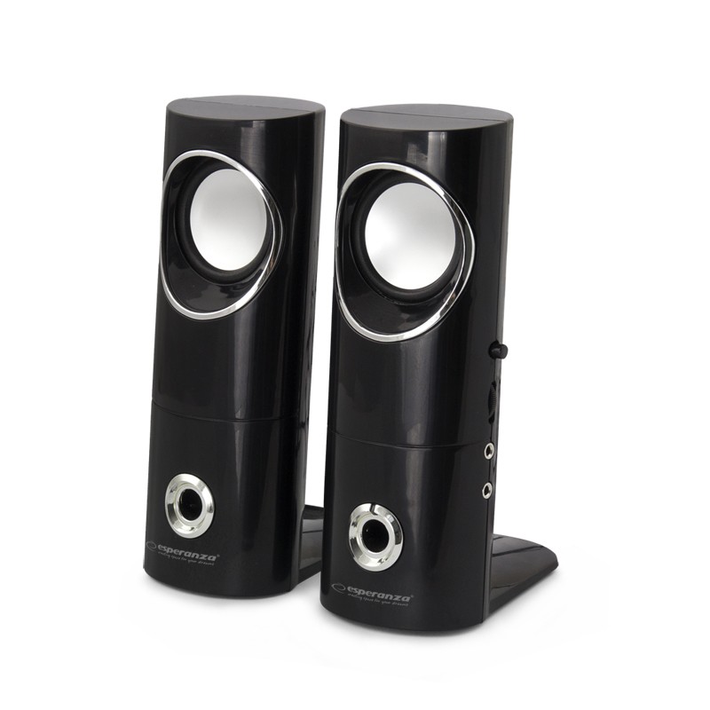 Wysokiej jakości stereofoniczne głośniki do notebooków i komputerów stacjonarnych. Gwarantują czyste i naturalne brzmienie dźwięku. Elegancki wygląd sprawia, że doskonale komponują się na biurku z monitorami LCD i innymi akcesoriami. Współpracują ze wszystkimi komputerami posiadającymi wyjście głośnikowe i wyjście USB. Posiadają wbudowany wyłącznik, regulację głośności oraz wyjście słuchawkowe. Wysokiej jakości materiały użyte do produkcji zabezpieczają przed elektryzowaniem się i przed generowaniem zakłóceń elektromagnetycznych.