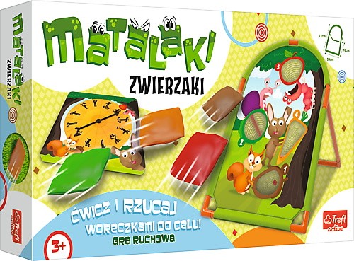 Trefl Active - Matalaki to gry ruchowe przeznaczone dla dowolnej liczby uczestników, w których losujesz zadanie, rzucasz woreczkiem do celu i zdobywasz punkty.