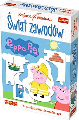Wesoła gra edukacyjna, która zapoznaje dzieci z pracą w różnych zawodach, a także z narzędziami i miejscami pracy. Podczas gry dzieci dowiadują się, jakie zawody wykonują sympatyczni bohaterowie ze świata Peppy, a także czego potrzebują do pracy. Bawiąc się, dzieci nie tylko uczą się rozpoznawania zawodów, ale także rozwijają logiczne myślenie, spostrzegawczość i sprawność manualną oraz ćwiczą pamięć. Dobra zabawa sprzyja też rozbudzaniu aktywności słownej.