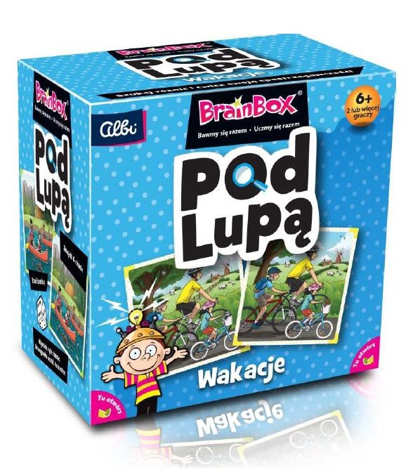 Pod Lupą Wakacje to karty obrazujące różne aktywności związane z wakacjami, wypoczynkiem oraz sportami.